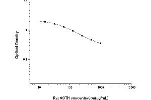 Intra-assay Precision (Precision within an assay): 3 samples with low, mid range and high level Rat ACTH were tested 20 times on one plate, respectively. Inter-assay Precision (Precision between assays): 3 samples with low, mid range and high level Rat ACTH were tested on 3 different plates, 20 replicates in each plate. Both intra-CV and inter-CV are < 10 %.