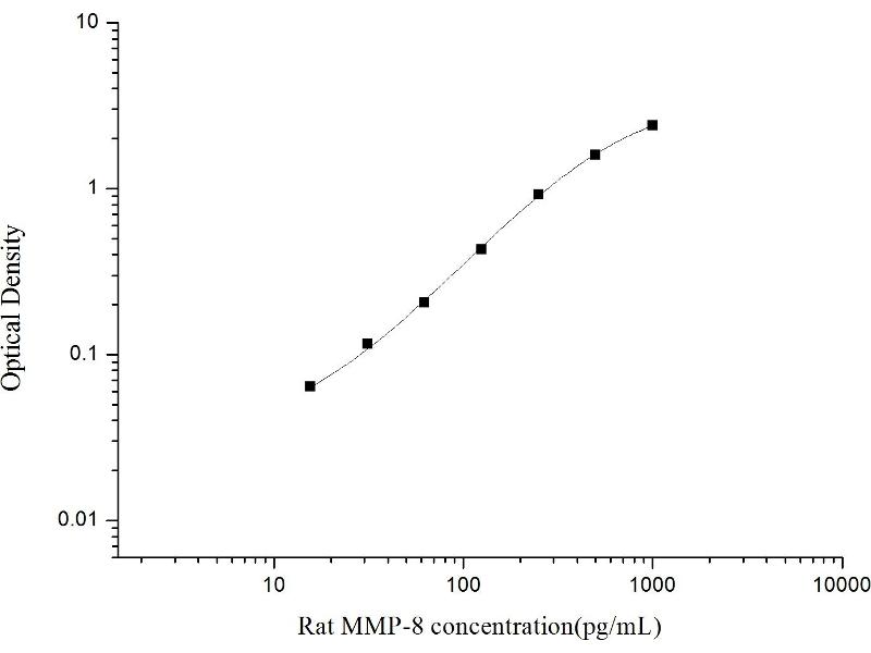 Intra-assay Precision (Precision within an assay): 3 samples with low, mid range and high level Rat MMP-8 were tested 20 times on one plate, respectively. Inter-assay Precision (Precision between assays): 3 samples with low, mid range and high level Rat MMP-8 were tested on 3 different plates, 20 replicates in each plate. Both intra-CV and inter-CV are < 10 %.