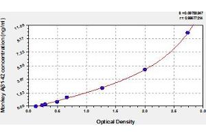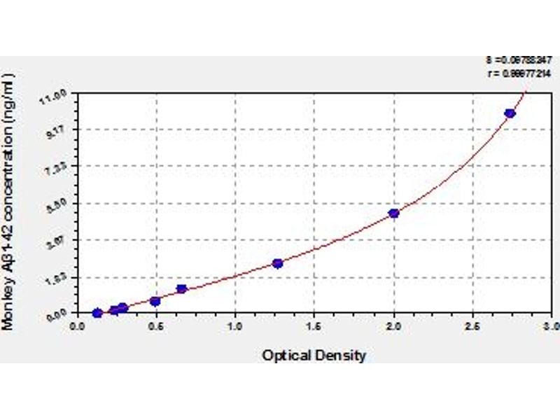 - This assay has high sensitivity and excellent specificity for detection of monkey A β1-42. No significant cross-reactivity or interference between monkey Aβ1-42 and analogues was observed. Note: Limited by current skills and knowledge, it is impossible for us to complete the cross-reactivity detection between monkey Aβ1-42 and all the analogues, therefore, cross reaction may still exist.