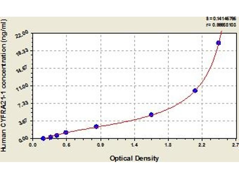 This assay has high sensitivity and excellent specificity for detection of human CYFRA21-1. No significant cross-reactivity or interference between human CYFRA21-1 and analogues was observed. Note: Limited by current ski lls and knowledge, it is impossible for us to complete the cross-reactivity detection between human CYFRA21-1 and all the analogues, therefore, cross reaction may still exist.