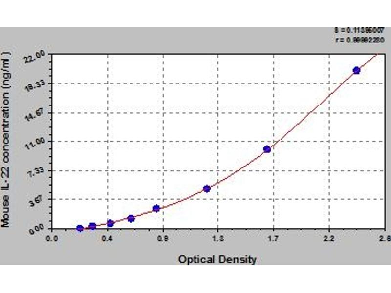 - This assay has high sensitivity and excellent specificity for detection of mouse IL-22. No significant cross-reactivity or interference between mouse IL-22 and analogues was observed. Note: Limited by current skills and knowledge, it is impossible for us to complete the cross-reactivity detection between mouse IL-22 and all the analogues, therefore, cross reaction may still exist.