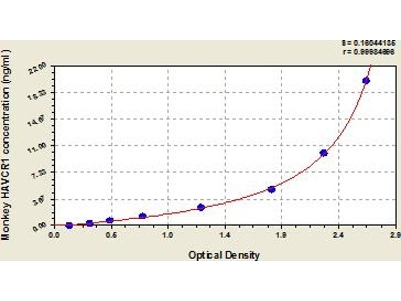 This assay has high sensitivity and excellent specificity for detection of monkey HAVCR1. No significant cross-reactivity or interference between monkey HAVCR1 and analogues was observed. Note: Limited by current skills and knowledge, it is impossible for us to complete the cross-reactivity detection between monkey HAVCR1 and all the analogues, therefore, cross reaction may still exist.