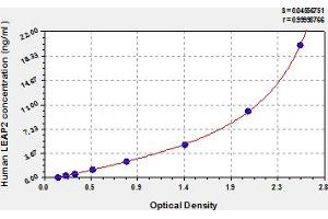 This assay has high sensitivity and excellent specificity for detection of human LEAP2. No significant cross-reactivity or interference between human LEAP2 and analogues was observed. Note: Limited by current skills and knowledge, it is impossible for us to complete the cross-reactivity detection between human LEAP2 and all the analogues, therefore, cross reaction may still exist.