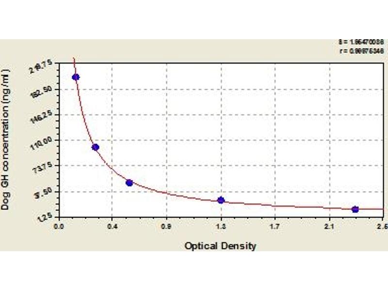 - This assay has high sensitivity and excellent specificity for detection of dog GH. No significant cross-reactivity or interference between dog GH and analogues was observed. Note: Limited by current skills and knowledge, it is impossible for us to complete the cross-reactivity detection between dog GH and all the analogues, therefore, cross reaction may still exist.