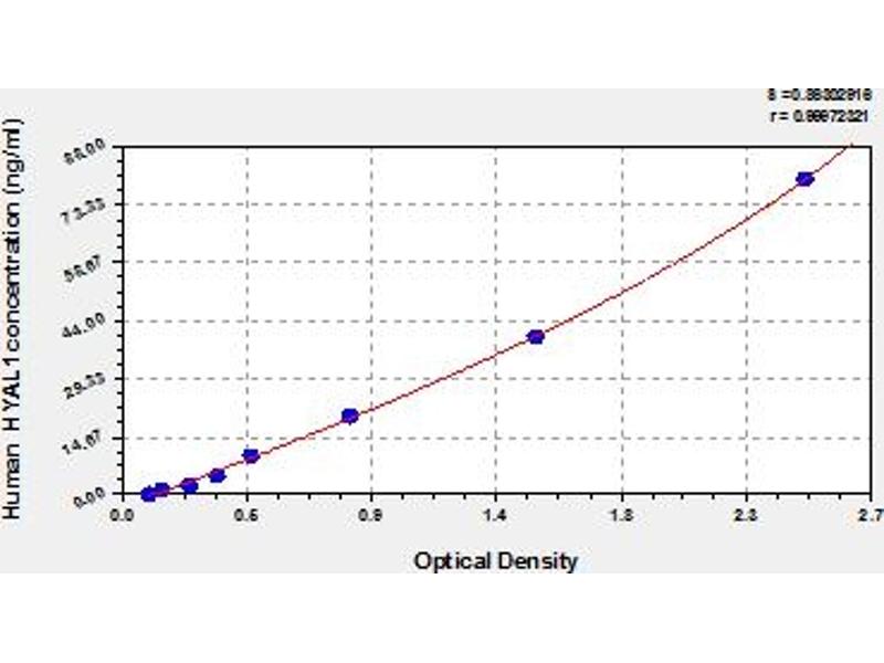 - This assay has high sensitivity and excellent specificity for detection of human HYAL1. No significant cross-reactivity or interference between human HYAL1 and analogues was observed. Note: Limited by current skills and knowledge, it is impossible for us to complete the cross-reactivity detection between human HYAL1 and all the analogues, therefore, cross reaction may still exist.