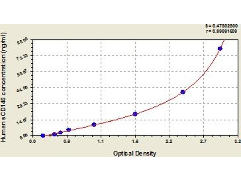 This assay has high sensitivity and excellent specificity for detection of human sCD146. No significant cross-reactivity or interference between human sCD146 and analogues was observed. Note: Limited by current skills and knowledge, it is impossible for us to complete the cross-reactivity detection between human sCD146 and all the analogues, therefore, cross reaction may still exist.