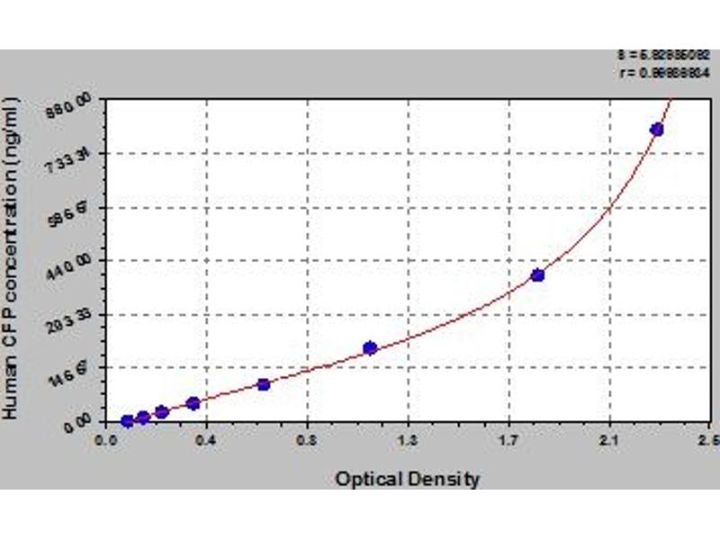 - This assay has high sensitivity and excellent specificity for detection of human CFP. No significant cross-reactivity or interference between human CFP and analogues was observed. Note: Limited by current skills and knowledge, it is impossible for us to complete the cross-reactivity detection between human CFP and all the analogues, therefore, cross reaction may still exist.