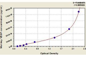 This assay has high sensitivity and excellent specificity for detection of monkey VEGF. No significant cross-reactivity or interference between monkey VEGF and analogues was observed. Note: Limited by current skills and knowledge, it is impossible for us to complete the cross-reactivity detection between monkey VEGF and all the analogues, therefore, cross reaction may still exist.