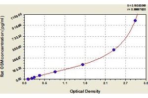 This assay has high sensitivity and excellent specificity for detection of rat OSM. No significant cross-reactivity or interference between rat OSM and analogues was observed. Note: Limited by current skills and knowledge, it is impossible for us to complete the cross-reactivity detection between rat OSM and all the analogues, therefore, cross reaction may still exist.