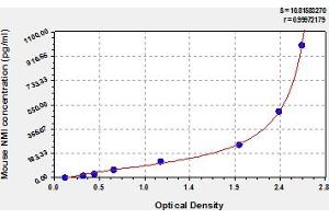 This assay has high sensitivity and excellent specificity for detection of mouse NMI. No significant cross-reactivity or interference between mouse NMI and analogues was observed. Note: Limited by current skills and knowledge, it is impossible for us to complete the cross-reactivity detection between mouse NMI and all the analogues, therefore, cross reaction may still exist.