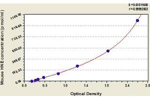 This assay has high sensitivity and excellent specificity for detection of mouse HNE. No significant cross-reactivity or interference between mouse HNE and analogues was observed. Note: Limited by current skills and knowledge, it is impossible for us to complete the cross-reactivity detection between mouse HNE and all the analogues, therefore, cross reaction may still exist.