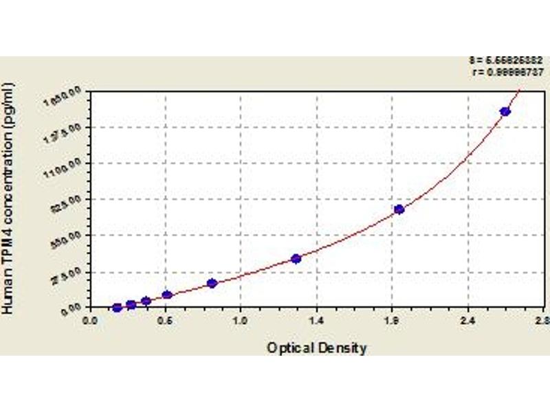 This assay has high sensitivity and excellent specificity for detection of human TPM4. No significant cross-reactivity or interference between human TPM4 and analogues was observed. Note: Limited by current skills and knowledge, it is impossible for us to complete the cross-reactivity detection between human TPM4 and all the analogues, therefore, cross reaction may still exist.
