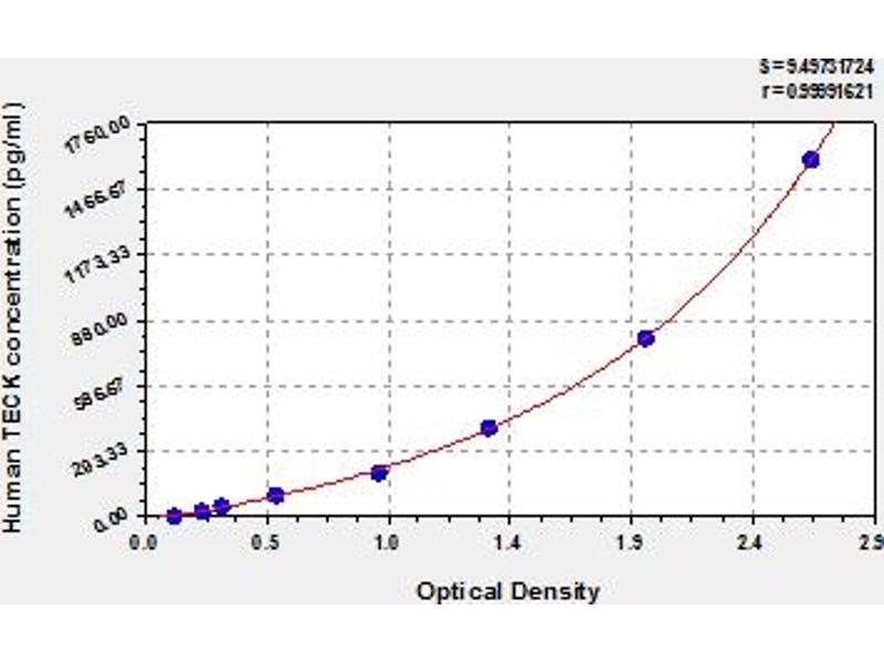 - This assay has high sensitivity and excellent specificity for detection of human TECK. No significant cross-reactivity or interference between human TECK and analogues was observed. Note: Limited by current skills and knowledge, it is impossible for us to complete the cross-reactivity detection between human TECK and all the analogues, therefore, cross reaction may still exist.