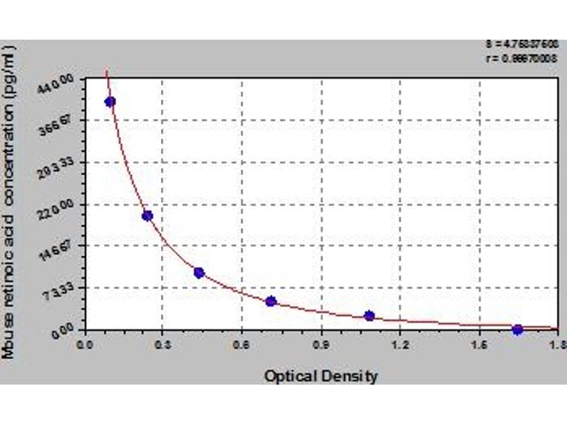 This assay has high sensitivity and excellent specificity for detection of mouse retinoic acid. No significant cross-reactivity or interference between mouse retinoic acid and analogues was observed. Note: Limited by current skills and knowledge, it is impossible for us to complete the cross-reactivity detection between mouse retinoic acid and all the analogues, therefore, cross reaction may still exist.