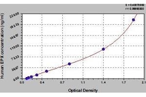- This assay has high sensitivity and excellent specificity for detection of human EPX. No significant cross-reactivity or interference between human EPX and analogues was observed. Note: Limited by current skills and knowledge, it is impossible for us to complete the cross-reactivity detection between human EPX and all the analogues, therefore, cross reaction may still exist.