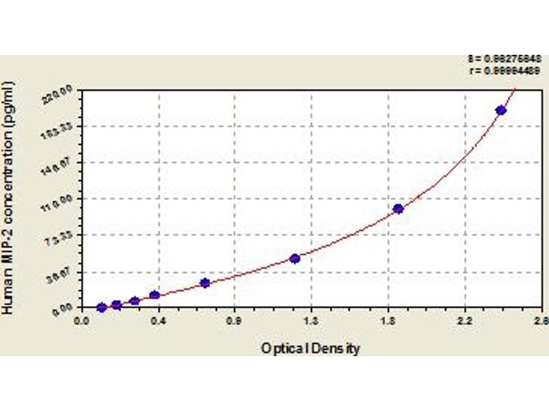 This assay has high sensitivity and excellent specificity for detection of human MIP-2. No significant cross-reactivity or interference between human MIP-2 and analogues was observed. Note: Limited by current skills and knowledge, it is impossible for us to complete the cross-reactivity detection between human MIP-2 and all the analogues, therefore, cross reaction may still exist.