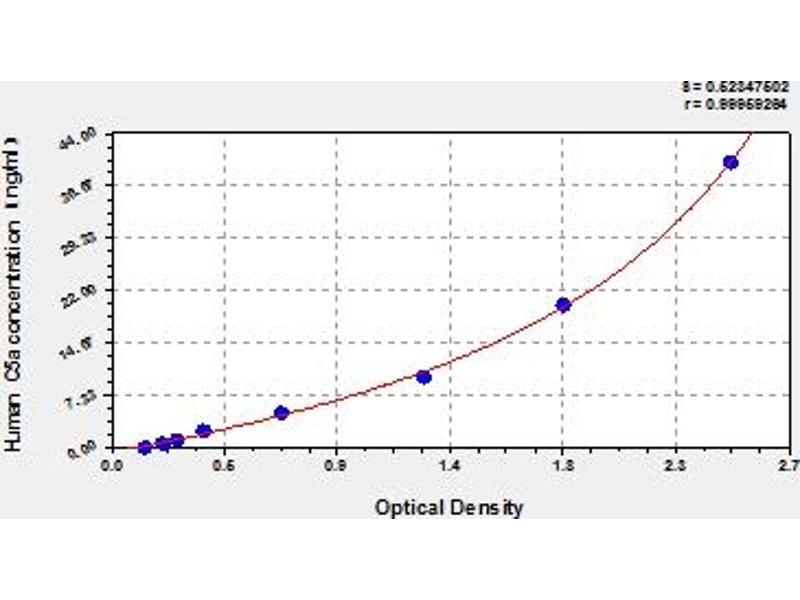 This assay has high sensitivity and excellent specificity for detection of human C5a. No significant cross-reactivity or interference between human C5a and analogues was observed. Note: Limited by current skills and knowledge, it is impossible for us to complete the cross-reactivity detection between human C5a and all the analogues, therefore, cross reaction may still exist.
