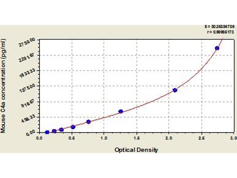 This assay has high sensitivity and excellent specificity for detection of mouse C4a. No significant cross-reactivity or interference between mouse C4a and analogues was observed. Note: Limited by current skills and knowledge, it is impossible for us to complete the cross-reactivity detection between mouse C4a and all the analogues, therefore, cross reaction may still exist.