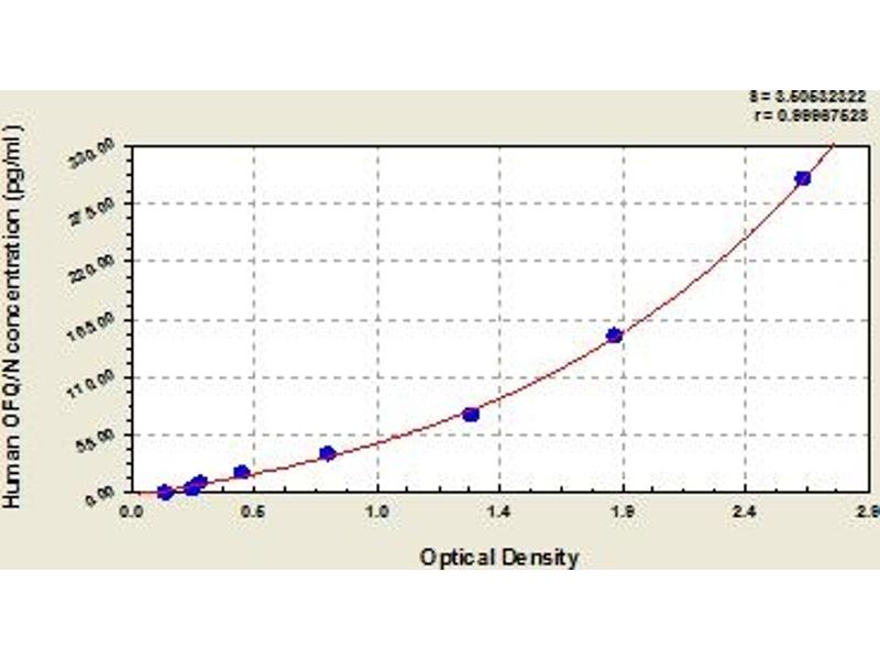 - This assay has high sensitivity and excellent specificity for detection of human OFQ. No significant cross-reactivity or interference between human OFQ and analogues was observed. Note: Limited by current skills and knowledge, it is impossible for us to complete the cross-reactivity detection between human OFQ and all the analogues, therefore, cross reaction may still exist.