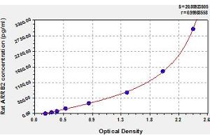 - This assay has high sensitivity and excellent specificity for detection of rat ARRB2. No significant cross-reactivity or interference between rat ARRB2 and analogues was observed. Note: Limited by current skills and knowledge, it is impossible for us to complete the cross-reactivity detection between rat ARRB2 and all the analogues, therefore, cross reaction may still exist.