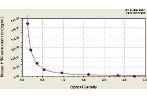 - This assay has high sensitivity and excellent specificity for detection of mouse HRG. No significant cross-reactivity or interference between mouse HRG and analogues was observed. Note: Limited by current skills and knowledge, it is impossible for us to complete the cross-reactivity detection between mouse HRG and all the analogues, therefore, cross reaction may still exist.