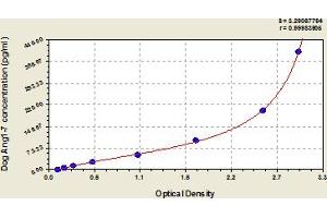 - This assay has high sensitivity and excellent specificity for detection of dog Ang1-7. No significant cross-reactivity or interference between dog Ang1-7 and analogues was observed. Note: Limited by current skills and knowledge, it is impossible for us to complete the cross-reactivity detection between dog Ang1-7 and all the analogues, therefore, cross reaction may still exist.
