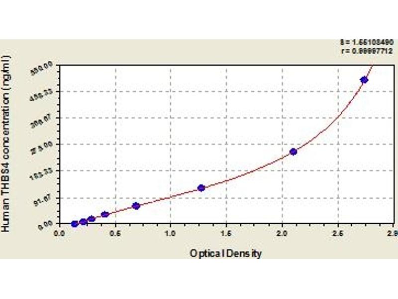 This assay has high sensitivity and excellent specificity for detection of human THBS4. No significant cross-reactivity or interference between human THBS4 and analogues was observed. Note: Limited by current skills and knowledge, it is impossible for us to complete the cross-reactivity detection between human THBS4 and all the analogues, therefore, cross reaction may still exist.
