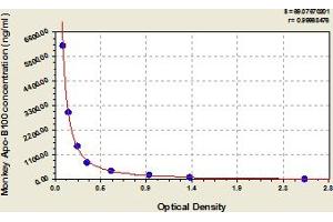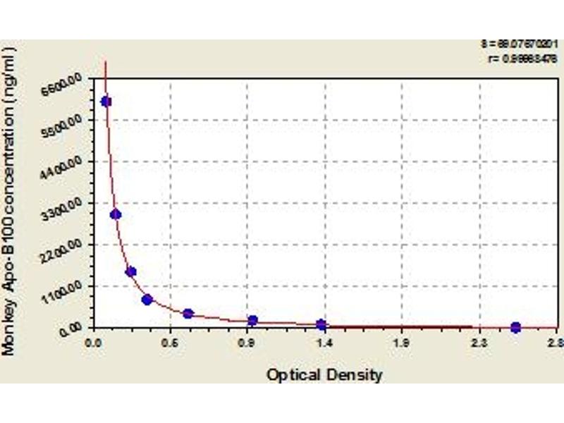 This assay has high sensitivity and excellent specificity for detection of monkey Apo-B100. No significant cross-reactivity or interference between monkey Apo-B100 and analogues was observed. Note: Limited by current skills and knowledge, it is impossible for us to complete the cross-reactivity detection between monkey Apo-B100 and all the analogues, therefore, cross reaction may still exist.
