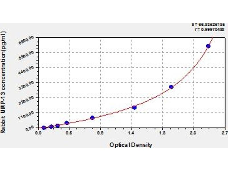 - This assay has high sensitivity and excellent specificity for detection of rabbit MMP-13. No significant cross-reactivity or interference between rabbit MMP-13 and analogues was observed. Note: Limited by current skills and knowledge, it is impossible for us to complete the cross-reactivity detection between rabbit MMP-13 and all the analogues, therefore, cross reaction may still exist.