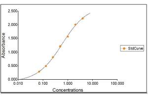 All samples and standards should be assayed in duplicates. 2. The Standards and the test sample(s) should be loaded into the ELISA wells as quickly as possible to avoid a shift in OD readings. Using a multichannel pipette would reduce this occurrence. Pipette 100 μL of Standard 0 (0.0 ng/mL) in duplicate Standard 1 (0.063 ng/mL) in duplicate Standard 2 (0.13 ng/mL) in duplicate Standard 3 (0.25 ng/mL) in duplicate Standard 4 (0.50 ng/mL) in duplicate Standard 5 (1 ng/mL) in duplicate Standard 6 (2 ng/mL) in duplicate Standard 7 (4 ng/mL) in duplicate 3. Pipette 100 μL of sample (in duplicate) into pre designated wells. 4. Incubate the micro titer plate at room temperature for one hundred and 2.5 hours. Keep plate covered and level during incubation. 5. Following incubation, aspirate the contents of the wells. 6. Completely fill each well with appropriately diluted Wash Solution and aspirate. Repeat three times, for a total of four washes. If washing manually: completely fill wells with wash buffer, invert the plate then pour/shake out the contents in a waste container. Follow this by sharply striking the wells on absorbent paper to remove residual buffer. Repeat 3 times for a total of four washes. 7. Pipette 100 μL of appropriately diluted Detection Antibody to each well. Incubate at room temperature for twenty (20 ± 2) minutes. Keep plate covered in the dark and level during incubation. 8. Wash and blot the wells as described in Steps 5/6. 9. Pipette 100 μL of appropriately diluted HRP-streptavidin to each well. Incubate at room temperature for twenty (20 ± 2) minutes. Keep plate covered in the dark and level during incubation. 10. Wash and blot the wells as described in Steps 5/6. 11. Pipette 100 μL of TMB Substrate Solution into each well. 12. Incubate in the dark at room temperature for precisely ten (10) minutes. 13. After ten minutes, add 100 μL of Stop Solution to each well. 14. Determine the absorbance (450 nm) of the contents of each well within 30 minutes. Calibrate the plate reader to manufacturer’s specifications.