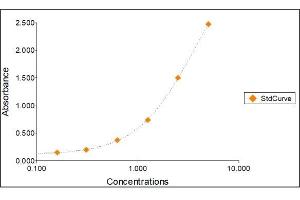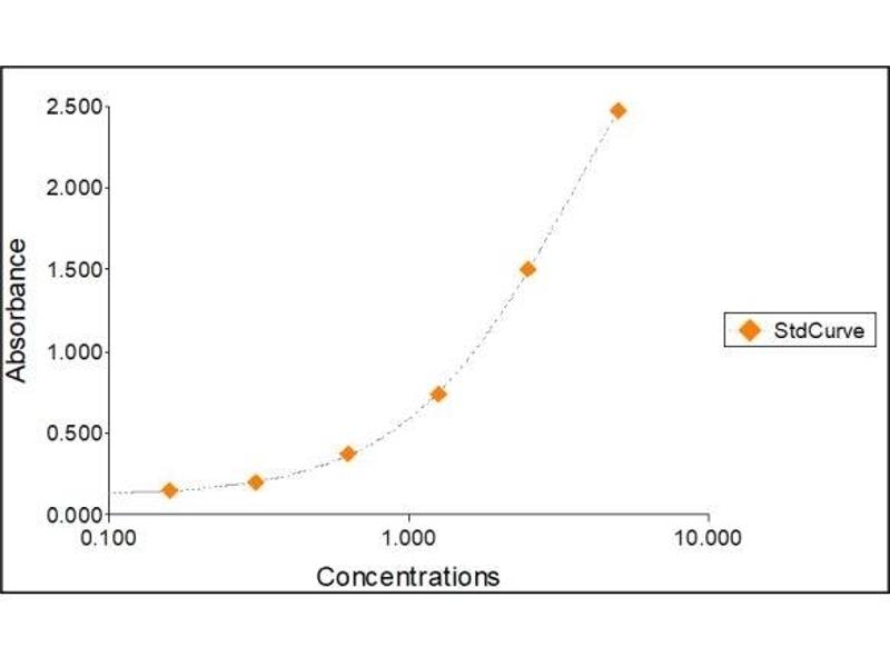 2. The Standards and the test sample(s) should be loaded into the ELISA wells as quickly as possible to avoid a shift in OD readings. Using a multichannel pipette would reduce this occurrence. Pipette 100 μL of Standard 0 (0.0 ng/mL) in duplicate Standard 1 (0.16 ng/mL) in duplicate Standard 2 (0.31 ng/mL) in duplicate Standard 3 (0.63 ng/mL) in duplicate Standard 4 (1.25 ng/mL) in duplicate Standard 5 (2.50 ng/mL) in duplicate Standard 6 (5 ng/mL) in duplicate