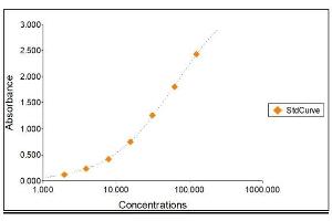 2. The Standards and the test sample(s) should be loaded into the ELISA wells as quickly as possible to avoid a shift in OD readings. Using a multichannel pipette would reduce this occurrence. Pipette 100 μL of Standard 0 (0.0 ng/mL) in duplicate Standard 1 (1.95 ng/mL) in duplicate Standard 2 (3.91 ng/mL) in duplicate Standard 3 (7.81 ng/mL) in duplicate Standard 4 (15.63 ng/mL) in duplicate Standard 5 (31.25 ng/mL) in duplicate Standard 6 (62.50 ng/mL) in duplicate Standard 7 (125 ng/mL) in duplicate