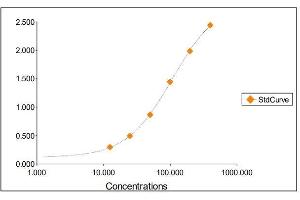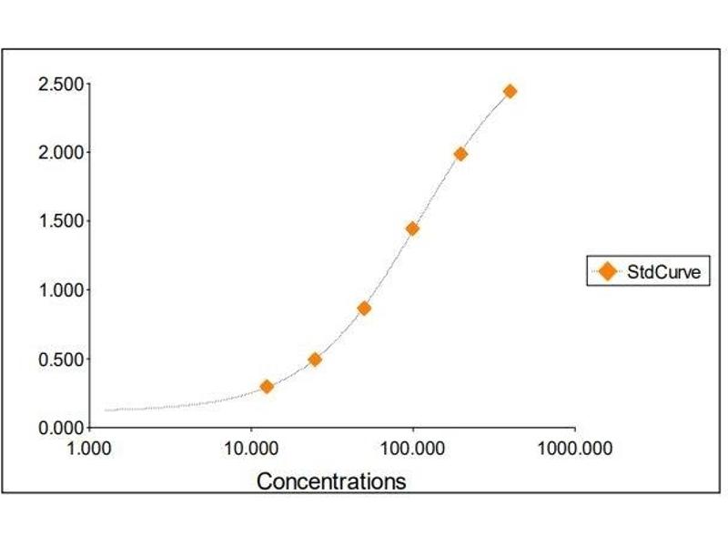 2. The Standards and the test sample(s) should be loaded into the ELISA wells as quickly as possible to avoid a shift in OD readings. Using a multichannel pipette would reduce this occurrence. Pipette 100 μL of Standard 0 (0.0 ng/mL) in duplicate Standard 1 (12.50 ng/mL) in duplicate Standard 2 (25 ng/mL) in duplicate Standard 3 (50 ng/mL) in duplicate Standard 4 (100 ng/mL) in duplicate Standard 5 (200 ng/mL) in duplicate Standard 6 (400 ng/mL) in duplicate