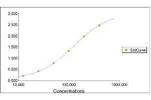 2. The Standards and the test sample(s) should be loaded into the ELISA wells as quickly as possible to avoid a shift in OD readings. Using a multichannel pipette would reduce this occurrence. Pipette 100 μL of Standard 0 (0.0 ng/mL) in duplicate Standard 1 (12.50 ng/mL) in duplicate Standard 2 (25 ng/mL) in duplicate Standard 3 (50 ng/mL) in duplicate Standard 4 (100 ng/mL) in duplicate Standard 5 (200 ng/mL) in duplicate Standard 6 (400 ng/mL) in duplicate