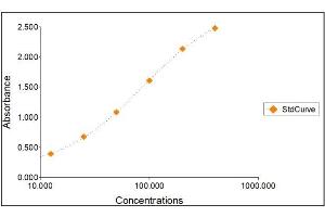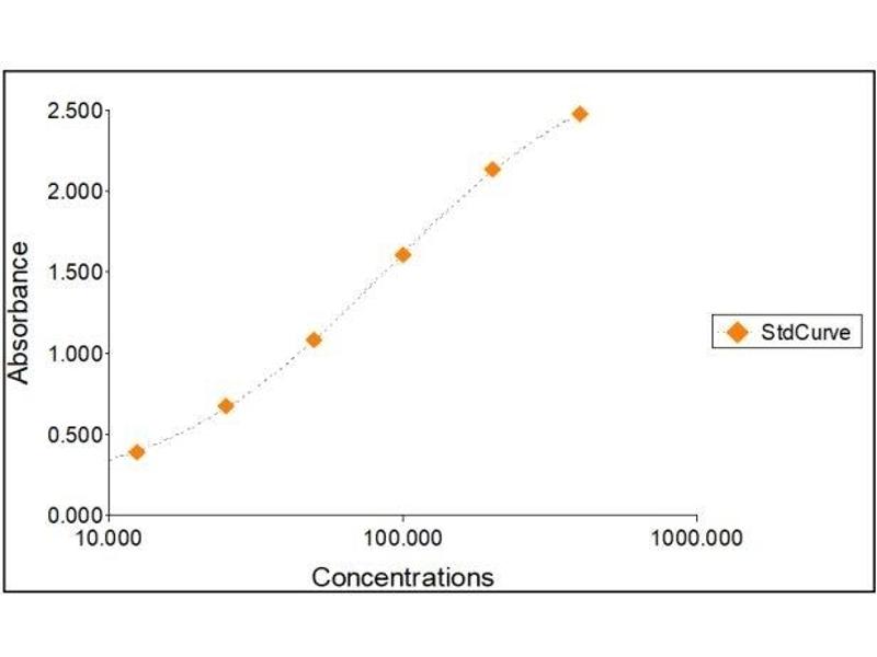 All samples and standards should be assayed in duplicates. 2. The Standards and the test sample(s) should be loaded into the ELISA wells as quickly as possible to avoid a shift in OD readings. Using a multichannel pipette would reduce this occurrence. Pipette 100 μL of Standard 0 (0.0 ng/mL) in duplicate Standard 1 (12.50 ng/mL) in duplicate Standard 2 (25 ng/mL) in duplicate Standard 3 (50 ng/mL) in duplicate Standard 4 (100 ng/mL) in duplicate Standard 5 (200 ng/mL) in duplicate Standard 6 (400 ng/mL) in duplicate 3. Pipette 100 μL of sample (in duplicate) into pre designated wells. 4. Incubate the micro titer plate at room temperature for thirty (30 ± 2) minutes. Keep plate covered and level during incubation. 5. Following incubation, aspirate the contents of the wells. 6. Completely fill each well with appropriately diluted Wash Solution and aspirate. Repeat three times, for a total of four washes. If washing manually: completely fill wells with wash buffer, invert the plate then pour/shake out the contents in a waste container. Follow this by sharply striking the wells on absorbent paper to remove residual buffer. Repeat 3 times for a total of four washes. 7. Pipette 100 μL of appropriately diluted Enzyme-Antibody Conjugate to each well. Incubate at room temperature for thirty (30 ± 2) minutes. Keep plate covered in the dark and level during incubation. 8. Wash and blot the wells as described in Steps 5/6. 9. Pipette 100 μL of TMB Substrate Solution into each well. 10. Incubate in the dark at room temperature for precisely ten (10) minutes. 11. After ten minutes, add 100 μL of Stop Solution to each well. 12. Determine the absorbance (450 nm) of the contents of each well within 30 minutes. Calibrate the plate reader to manufacturer’s specifications.