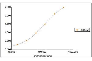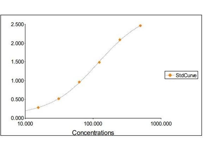 2. The Standards and the test sample(s) should be loaded into the ELISA wells as quickly as possible to avoid a shift in OD readings. Using a multichannel pipette would reduce this occurrence. Pipette 100 μL of Standard 0 (0.0 ng/mL) in duplicate Standard 1 (15.63 ng/mL) in duplicate Standard 2 (31.25 ng/mL) in duplicate Standard 3 (62.50 ng/mL) in duplicate Standard 4 (125 ng/mL) in duplicate Standard 5 (250 ng/mL) in duplicate Standard 6 (500 ng/mL) in duplicate