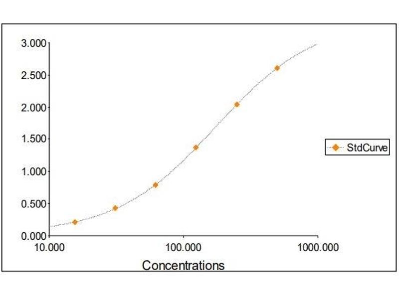 2. The Standards and the test sample(s) should be loaded into the ELISA wells as quickly as possible to avoid a shift in OD readings. Using a multichannel pipette would reduce this occurrence. Pipette 100 μL of Standard 0 (0.0 ng/mL) in duplicate Standard 1 (15.63 ng/mL) in duplicate Standard 2 (31.25 ng/mL) in duplicate Standard 3 (62.50 ng/mL) in duplicate Standard 4 (125 ng/mL) in duplicate Standard 5 (250 ng/mL) in duplicate Standard 6 (500 ng/mL) in duplicate