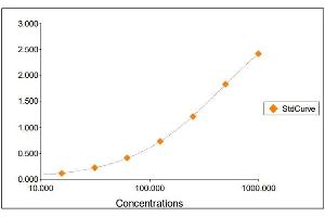2. The Standards and the test sample(s) should be loaded into the ELISA wells as quickly as possible to avoid a shift in OD readings. Using a multichannel pipette would reduce this occurrence. Pipette 100 μL of Standard 0 (0.0 ng/mL) in duplicate Standard 1 (15.63 ng/mL) in duplicate Standard 2 (31.25 ng/mL) in duplicate Standard 3 (62.50 ng/mL) in duplicate Standard 4 (125 ng/mL) in duplicate Standard 5 (250 ng/mL) in duplicate Standard 6 (500 ng/mL) in duplicate Standard 7 (1000 ng/mL) in duplicate