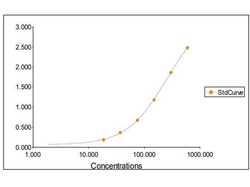 2. The Standards and the test sample(s) should be loaded into the ELISA wells as quickly as possible to avoid a shift in OD readings. Using a multichannel pipette would reduce this occurrence. Pipette 100 μL of Standard 0 (0.0 ng/mL) in duplicate Standard 1 (18.75ng/mL) in duplicate Standard 2 (37.50 ng/mL) in duplicate Standard 3 (75 ng/mL) in duplicate Standard 4 (150 ng/mL) in duplicate Standard 5 (300 ng/mL) in duplicate Standard 6 (600 ng/mL) in duplicate