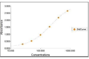 2. The Standards and the test sample(s) should be loaded into the ELISA wells as quickly as possible to avoid a shift in OD readings. Using a multichannel pipette would reduce this occurrence. Pipette 100 μL of Standard 0 (0.0 ng/mL) in duplicate Standard 1 (25 ng/mL) in duplicate Standard 2 (50 ng/mL) in duplicate Standard 3 (100 ng/mL) in duplicate Standard 4 (200 ng/mL) in duplicate Standard 5 (400 ng/mL) in duplicate Standard 6 (800 ng/mL) in duplicate