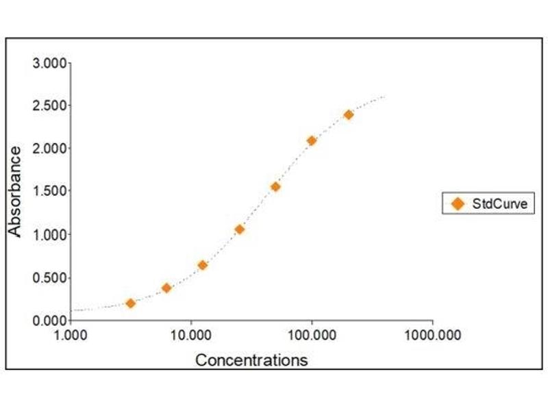 2. The Standards and the test sample(s) should be loaded into the ELISA wells as quickly as possible to avoid a shift in OD readings. Using a multichannel pipette would reduce this occurrence. Pipette 100 μL of Standard 0 (0.0 ng/mL) in duplicate Standard 1 (3.13 ng/mL) in duplicate Standard 2 (6.25 ng/mL) in duplicate Standard 3 (12.5 ng/mL) in duplicate Standard 4 (25 ng/mL) in duplicate Standard 5 (50 ng/mL) in duplicate Standard 6 (100 ng/mL) in duplicate Standard 7 (200 ng/mL) in duplicate