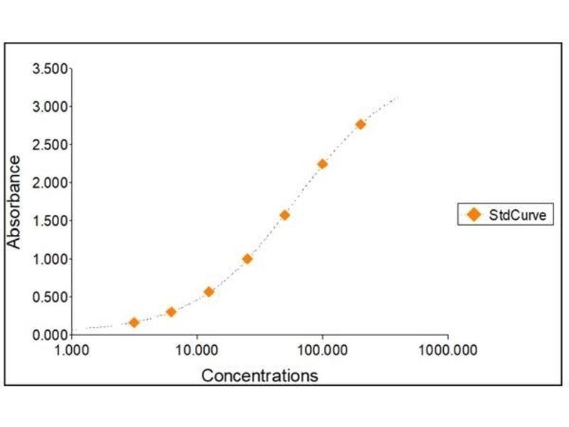 2. The Standards and the test sample(s) should be loaded into the ELISA wells as quickly as possible to avoid a shift in OD readings. Using a multichannel pipette would reduce this occurrence. Pipette 100 μL of Standard 0 (0.0 ng/mL) in duplicate Standard 1 (3.13 ng/mL) in duplicate Standard 2 (6.25 ng/mL) in duplicate Standard 3 (12.5 ng/mL) in duplicate Standard 4 (25 ng/mL) in duplicate Standard 5 (50 ng/mL) in duplicate Standard 6 (100 ng/mL) in duplicate Standard 7 (200 ng/mL) in duplicate