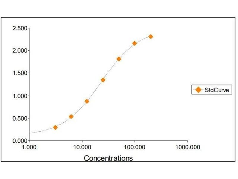 All samples and standards should be assayed in duplicates. 2. The Standards and the test sample(s) should be loaded into the ELISA wells as quickly as possible to avoid a shift in OD readings. Using a multichannel pipette would reduce this occurrence. Pipette 100 μL of Standard 0 (0.0 ng/mL) in duplicate Standard 1 (3.13 ng/mL) in duplicate Standard 2 (6.25 ng/mL) in duplicate Standard 3 (12.50 ng/mL) in duplicate Standard 4 (25 ng/mL) in duplicate Standard 5 (50 ng/mL) in duplicate Standard 6 (100 ng/mL) in duplicate Standard 7 (200 ng/mL) in duplicate 3. Pipette 100 μL of sample (in duplicate) into pre designated wells. 4. Incubate the micro titer plate at room temperature for thirty (30 ± 2) minutes. Keep plate covered and level during incubation. 5. Following incubation, aspirate the contents of the wells. 6. Completely fill each well with appropriately diluted Wash Solution and aspirate. Repeat three times, for a total of four washes. If washing manually: completely fill wells with wash buffer, invert the plate then pour/shake out the contents in a waste container. Follow this by sharply striking the wells on absorbent paper to remove residual buffer. Repeat 3 times for a total of four washes. 7. Pipette 100 μL of appropriately diluted Enzyme-Antibody Conjugate to each well. Incubate at room temperature for thirty (30 ± 2) minutes. Keep plate covered in the dark and level during incubation. 8. Wash and blot the wells as described in Steps 5/6. 9. Pipette 100 μL of TMB Substrate Solution into each well. 10. Incubate in the dark at room temperature for precisely ten (10) minutes. 11. After ten minutes, add 100 μL of Stop Solution to each well. 12. Determine the absorbance (450 nm) of the contents of each well within 30 minutes. Calibrate the plate reader to manufacturer’s specifications.
