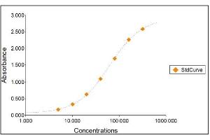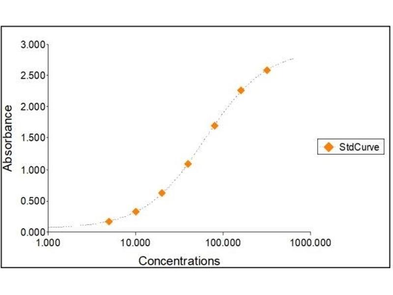 All samples and standards should be assayed in duplicates. 2. The Standards and the test sample(s) should be loaded into the ELISA wells as quickly as possible to avoid a shift in OD readings. Using a multichannel pipette would reduce this occurrence. Pipette 100 μL of Standard 0 (0.0 ng/mL) in duplicate Standard 1 (5 ng/mL) in duplicate Standard 2 (10 ng/mL) in duplicate Standard 3 (20 ng/mL) in duplicate Standard 4 (40 ng/mL) in duplicate Standard 5 (80 ng/mL) in duplicate Standard 6 (160 ng/mL) in duplicate Standard 7 (320 ng/mL) in duplicate 3. Pipette 100 μL of sample (in duplicate) into pre designated wells. 4. Incubate the micro titer plate at room temperature for forty-five (45 ± 2) minutes. Keep plate covered and level during incubation. 5. Following incubation, aspirate the contents of the wells. 6. Completely fill each well with appropriately diluted Wash Solution and aspirate. Repeat three times, for a total of four washes. If washing manually: completely fill wells with wash buffer, invert the plate then pour/shake out the contents in a waste container. Follow this by sharply striking the wells on absorbent paper to remove residual buffer. Repeat 3 times for a total of four washes. 7. Pipette 100 μL of appropriately diluted Enzyme-Antibody Conjugate to each well. Incubate at room temperature for ten (10 ± 2) minutes. Keep plate covered in the dark and level during incubation. 8. Wash and blot the wells as described in Steps 5/6. 9. Pipette 100 μL of TMB Substrate Solution into each well. 10. Incubate in the dark at room temperature for precisely ten (10) minutes. 11. After ten minutes, add 100 μL of Stop Solution to each well. 12. Determine the absorbance (450 nm) of the contents of each well within 30 minutes. Calibrate the plate reader to manufacturer’s specifications.