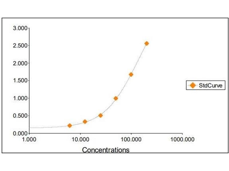 2. The Standards and the test sample(s) should be loaded into the ELISA wells as quickly as possible to avoid a shift in OD readings. Using a multichannel pipette would reduce this occurrence. Pipette 100 μL of Standard 0 (0.0 ng/mL) in duplicate Standard 1 (6.25 ng/mL) in duplicate Standard 2 (12.5 ng/mL) in duplicate Standard 3 (25 ng/mL) in duplicate Standard 4 (50 ng/mL) in duplicate Standard 5 (100 ng/mL) in duplicate Standard 6 (200 ng/mL) in duplicate