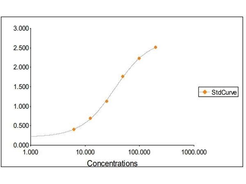 2. The Standards and the test sample(s) should be loaded into the ELISA wells as quickly as possible to avoid a shift in OD readings. Using a multichannel pipette would reduce this occurrence. Pipette 100 μL of Standard 0 (0.0 ng/mL) in duplicate Standard 1 (6.25 ng/mL) in duplicate Standard 2 (12.5 ng/mL) in duplicate Standard 3 (25 ng/mL) in duplicate Standard 4 (50 ng/mL) in duplicate Standard 5 (100 ng/mL) in duplicate Standard 6 (200 ng/mL) in duplicate