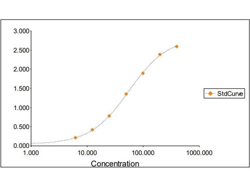2. The Standards and the test sample(s) should be loaded into the ELISA wells as quickly as possible to avoid a shift in OD readings. Using a multichannel pipette would reduce this occurrence. Pipette 100 μL of Standard 0 (0.0 ng/mL) in duplicate Standard 1 (6.25 ng/mL) in duplicate Standard 2 (12.5 ng/mL) in duplicate Standard 3 (25 ng/mL) in duplicate Standard 4 (50 ng/mL) in duplicate Standard 5 (100 ng/mL) in duplicate Standard 6 (200 ng/mL) in duplicate Standard 7 (400 ng/mL) in duplicate