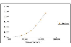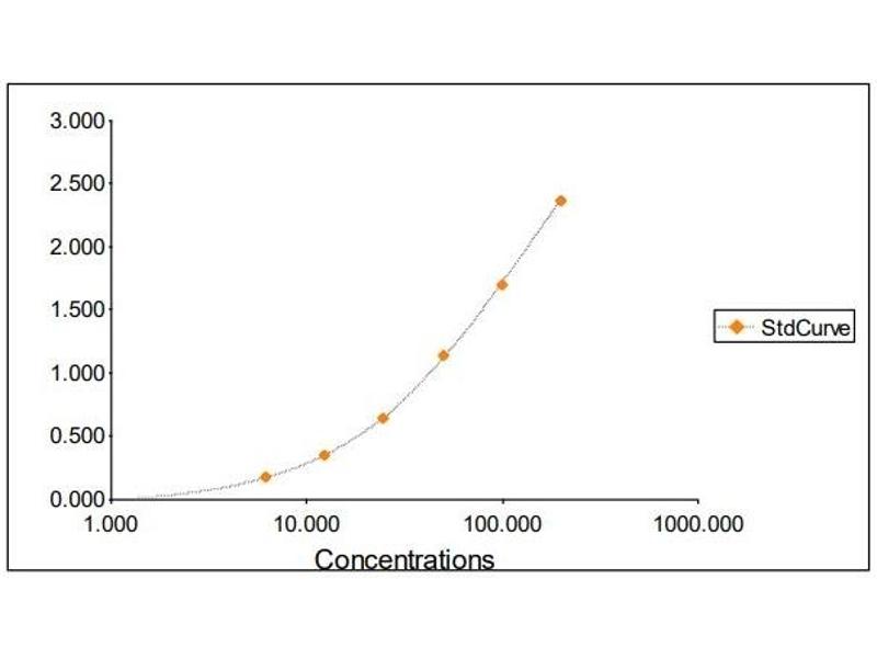 2. The Standards and the test sample(s) should be loaded into the ELISA wells as quickly as possible to avoid a shift in OD readings. Using a multichannel pipette would reduce this occurrence. Pipette 100 μL of Standard 0 (0.0 ng/mL) in duplicate Standard 1 (6.25 ng/mL) in duplicate Standard 2 (12.50 ng/mL) in duplicate Standard 3 (25 ng/mL) in duplicate Standard 4 (50 ng/mL) in duplicate Standard 5 (100 ng/mL) in duplicate Standard 6 (200 ng/mL) in duplicate