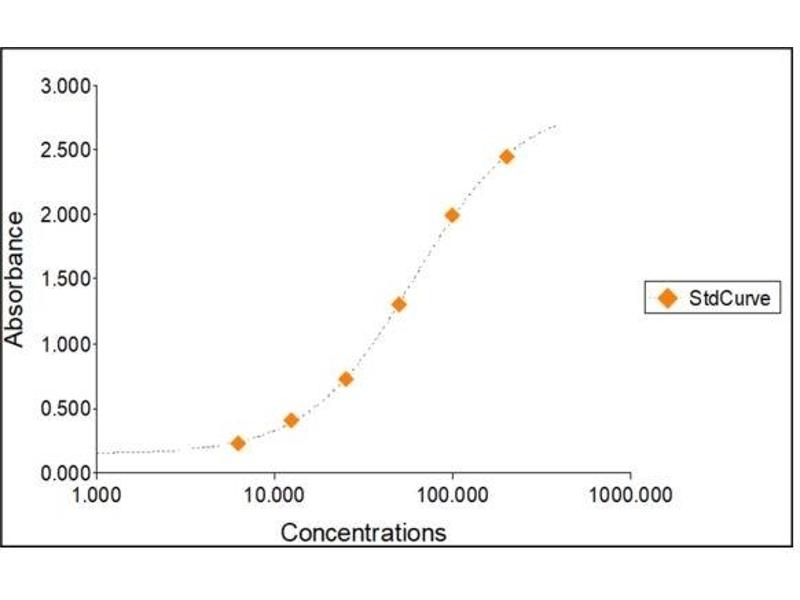 All samples and standards should be assayed in duplicates. 2. The Standards and the test sample(s) should be loaded into the ELISA wells as quickly as possible to avoid a shift in OD readings. Using a multichannel pipette would reduce this occurrence. Pipette 100 μL of Standard 0 (0.0 ng/mL) in duplicate Standard 1 (6.25 ng/mL) in duplicate Standard 2 (12.50 ng/mL) in duplicate Standard 3 (25 ng/mL) in duplicate Standard 4 (50 ng/mL) in duplicate Standard 5 (100 ng/mL) in duplicate Standard 6 (200 ng/mL) in duplicate 3. Pipette 100 μL of sample (in duplicate) into pre designated wells. 4. Incubate the micro titer plate at room temperature for thirty (30 ± 2) minutes. Keep plate covered and level during incubation. 5. Following incubation, aspirate the contents of the wells. 6. Completely fill each well with appropriately diluted Wash Solution and aspirate. Repeat three times, for a total of four washes. If washing manually: completely fill wells with wash buffer, invert the plate then pour/shake out the contents in a waste container. Follow this by sharply striking the wells on absorbent paper to remove residual buffer. Repeat 3 times for a total of four washes. 7. Pipette 100 μL of appropriately diluted Enzyme-Antibody Conjugate to each well. Incubate at room temperature for thirty (30 ± 2) minutes. Keep plate covered in the dark and level during incubation. 8. Wash and blot the wells as described in Steps 5/6. 9. Pipette 100 μL of TMB Substrate Solution into each well. 10. Incubate in the dark at room temperature for precisely ten (10) minutes. 11. After ten minutes, add 100 μL of Stop Solution to each well. 12. Determine the absorbance (450 nm) of the contents of each well within 30 minutes. Calibrate the plate reader to manufacturer’s specifications.