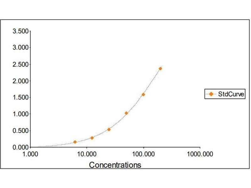 All samples and standards should be assayed in duplicates. 2. The Standards and the test sample(s) should be loaded into the ELISA wells as quickly as possible to avoid a shift in OD readings. Using a multichannel pipette would reduce this occurrence. Pipette 100 μL of Standard 0 (0.0 ng/mL) in duplicate Standard 1 (6.25 ng/mL) in duplicate Standard 2 (12.50 ng/mL) in duplicate Standard 3 (25 ng/mL) in duplicate Standard 4 (50 ng/mL) in duplicate Standard 5 (100 ng/mL) in duplicate Standard 6 (200 ng/mL) in duplicate 3. Pipette 100 μL of sample (in duplicate) into pre designated wells. 4. Incubate the micro titer plate at room temperature for thirty (30 ± 2) minutes. Keep plate covered and level during incubation. 5. Following incubation, aspirate the contents of the wells. 6. Completely fill each well with appropriately diluted Wash Solution and aspirate. Repeat three times, for a total of four washes. If washing manually: completely fill wells with wash buffer, invert the plate then pour/shake out the contents in a waste container. Follow this by sharply striking the wells on absorbent paper to remove residual buffer. Repeat 3 times for a total of four washes. 7. Pipette 100 μL of appropriately diluted Enzyme-Antibody Conjugate to each well. Incubate at room temperature for twenty (20 ± 2) minutes. Keep plate covered in the dark and level during incubation. 8. Wash and blot the wells as described in Steps 5/6. 9. Pipette 100 μL of TMB Substrate Solution into each well. 10. Incubate in the dark at room temperature for precisely ten (10) minutes. 11. After ten minutes, add 100 μL of Stop Solution to each well. 12. Determine the absorbance (450 nm) of the contents of each well within 30 minutes. Calibrate the plate reader to manufacturer’s specifications.